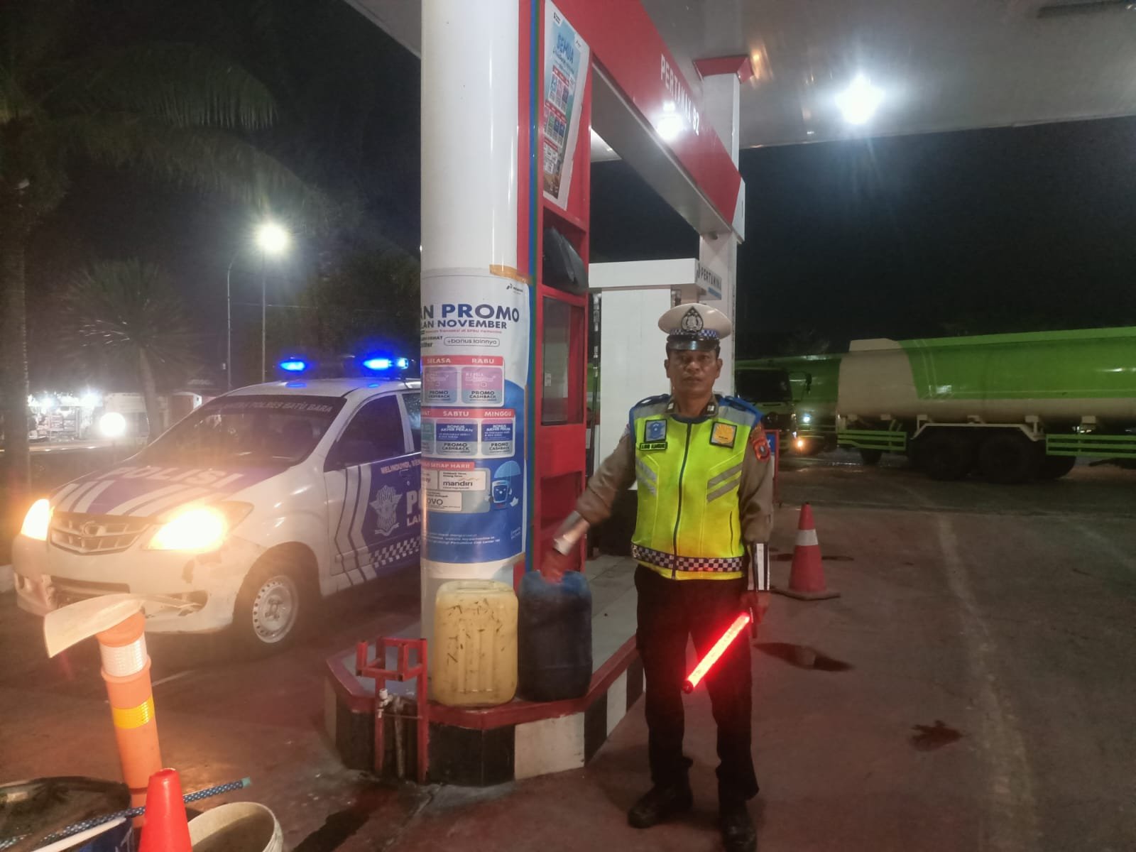 Personil yang melaksanakan tugas ini adalah AIPTU A. Rajagukguk. Kegiatan utama yang dilakukan meliputi patroli malam untuk menjaga kelancaran lalu lintas, menghidupkan senter appil di lokasi-lokasi rawan kemacetan, kecelakaan, dan balap liar, serta melakukan pemeriksaan terhadap persediaan BBM di SPBU yang berada di wilayah tersebut.